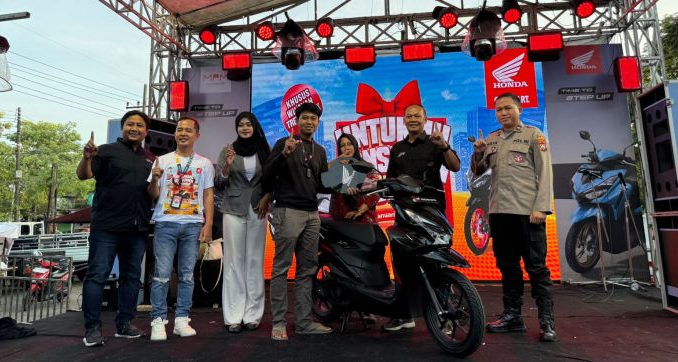 Penyerahan hadiah utama Honda BeAT dilakukan secara langsung oleh Suhari, Marketing Communication & Development Division Head MPM Honda Jatim, sebagai bentuk apresiasi sekaligus komitmen perusahaan kepada konsumen setia Honda.